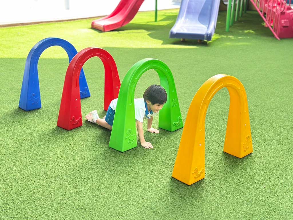 “Physical Education” with Native English Speaking Teacher นักเรียนได้เรียนรู้ภาษาอังกฤษผ่านการออกกำลังในวิชาพลศึกษา เช่น กิจกรรม “Going Under the Arches and Walking on the Flower Steps” ทำให้เรียนรู้ภาษาอังกฤษอย่างสนุกสนานในชีวิตประจำวัน  และนักเรียนได้ลอดผ่านอุโมงค์ และฝึกการทรงตัวโดยเดินบนดอกไม้ทรงตัว