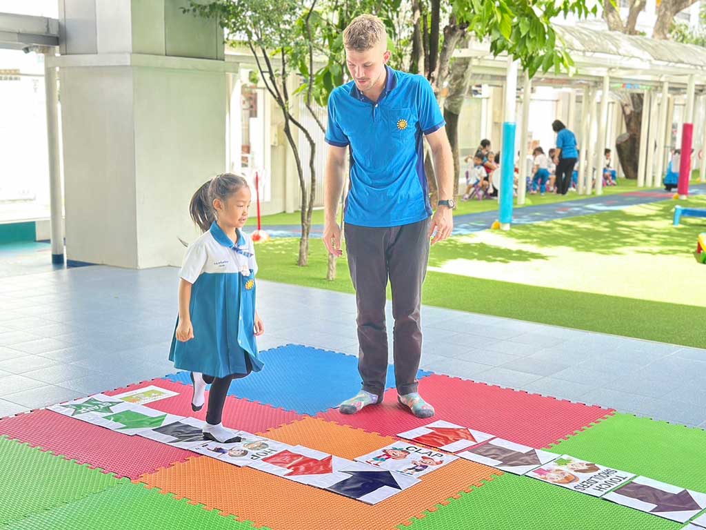 โดยให้นักเรียนออกแบบ Coding เอง และสมมุติตนเองเป็น Robot ปฏิบัติตาม Coding นักเรียนทุกคนจะได้ออกแบบ Coding เพื่อให้บรรลุเป้าหมาย และปฏิบัติตาม Coding อย่างสนุกสนาน
